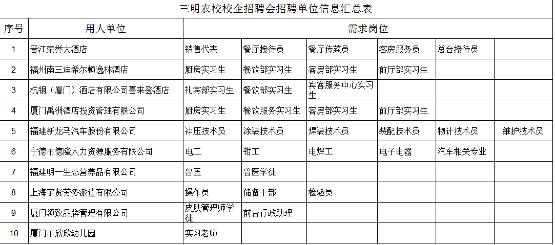 开云(中国)Kaiyun校企招聘会招聘单位信息公示