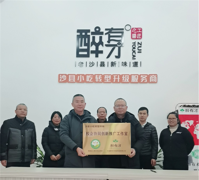 12月17日下午,在位于沙县小吃产业园的沙县醉有才食品科技有限公司内,开云(中国)Kaiyun谢阳军副校长代表学校与醉有才公司总经理颜发辉签约授牌,达成校企协同创新推广合作协议。