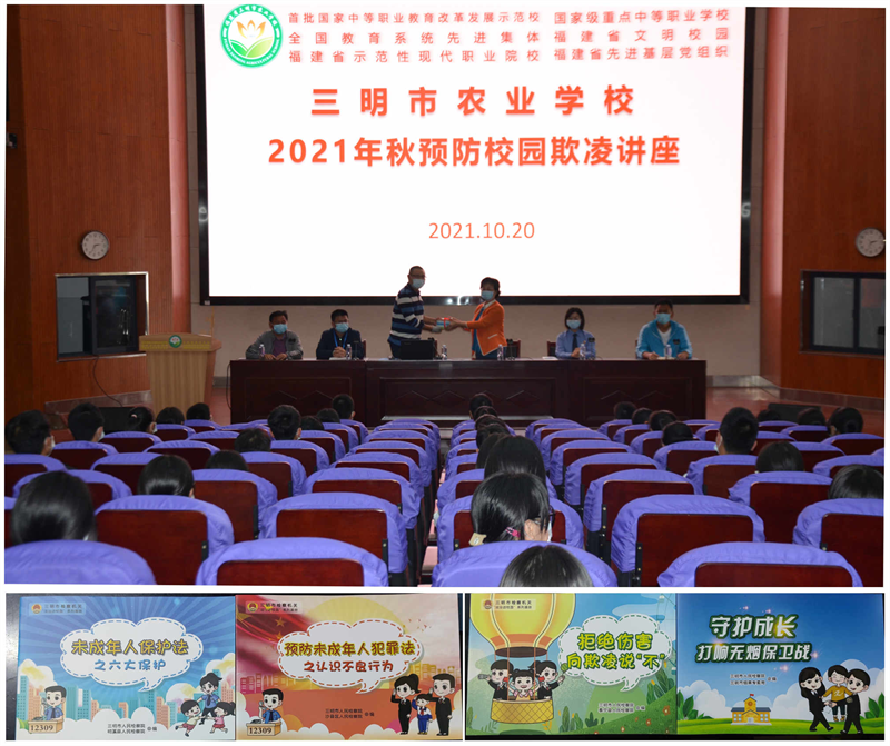 为进一步做好校园安全工作,防止校园欺凌事件的发生,增强学生法治意识,预防校园暴力事件,提高学生安全防范意识和自我保护能力。10月20日下午,开云(中国)Kaiyun与三明市人民检察院,在农校报告厅开展主题为“拒绝伤害,向欺凌说‘不’”的预防校园欺凌讲座。