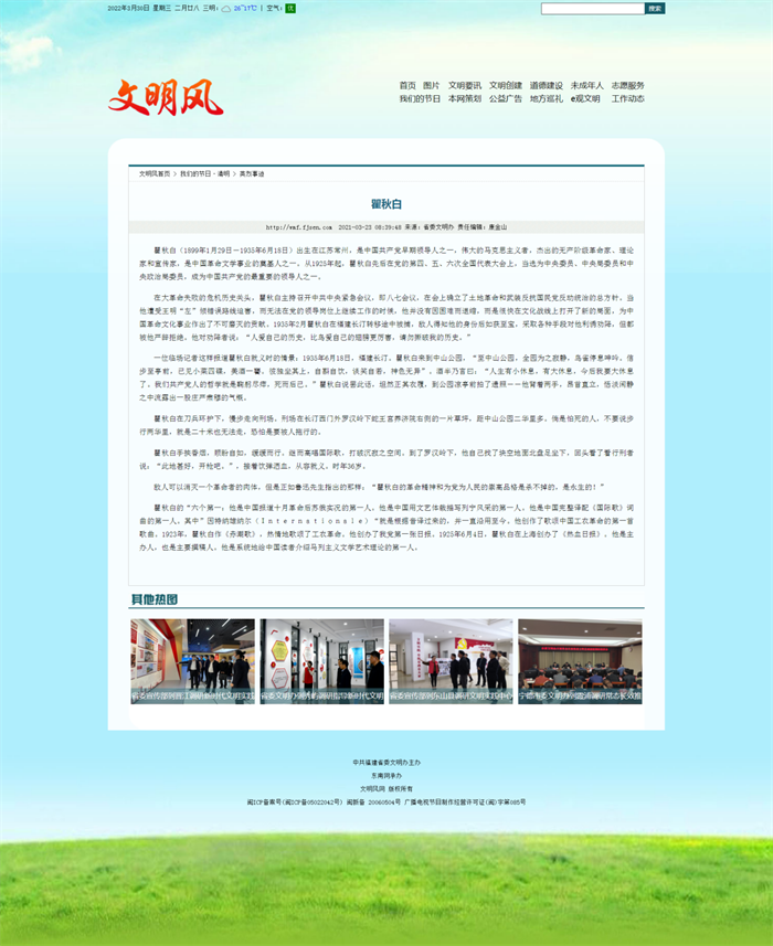 2022年清明节,学校继续根据沙县区委文明办的通知精神要求,认真组织全校师生开展“2022清明祭英烈”网络祭奠活动,大家通过文明风”《我们的节日.清明》专题、《新福建》2022清明祭英烈、“文明福建”微信公众号福建“2022清明祭英烈”活动等多渠道多形式开展清明祭奠英烈活动。缅怀先烈,学习方志敏、瞿秋白、赵一曼、林觉民、林祥谦、李大钊、刘志丹、张思德、刘胡兰、杨根思、邱少云等英烈事迹,并献花敬礼、向英烈表达崇高敬意。
