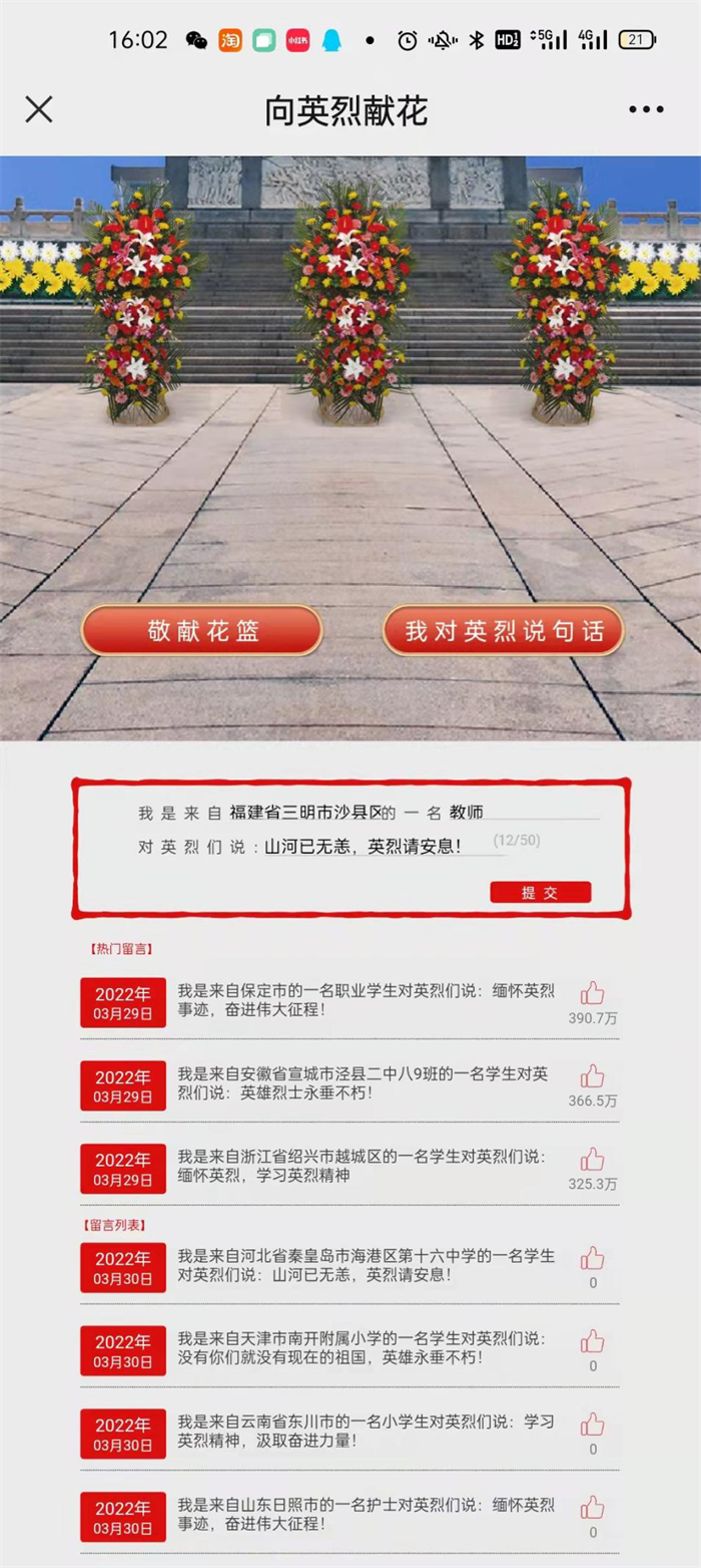 开云(中国)Kaiyun组织全校师生积极开展“2022清明祭英烈”网络祭奠活动