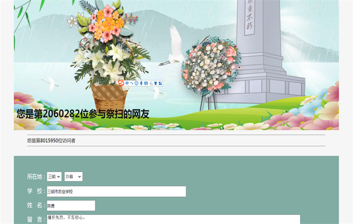 多年来,三明市农业学校坚持组织开展“清明祭英烈”网络祭奠活动,重视倡导文明祭祀,培育文明新风,引导未成年人“扣好人生第一粒扣子”,缅怀先烈,传承红色基因,弘扬英烈精神。