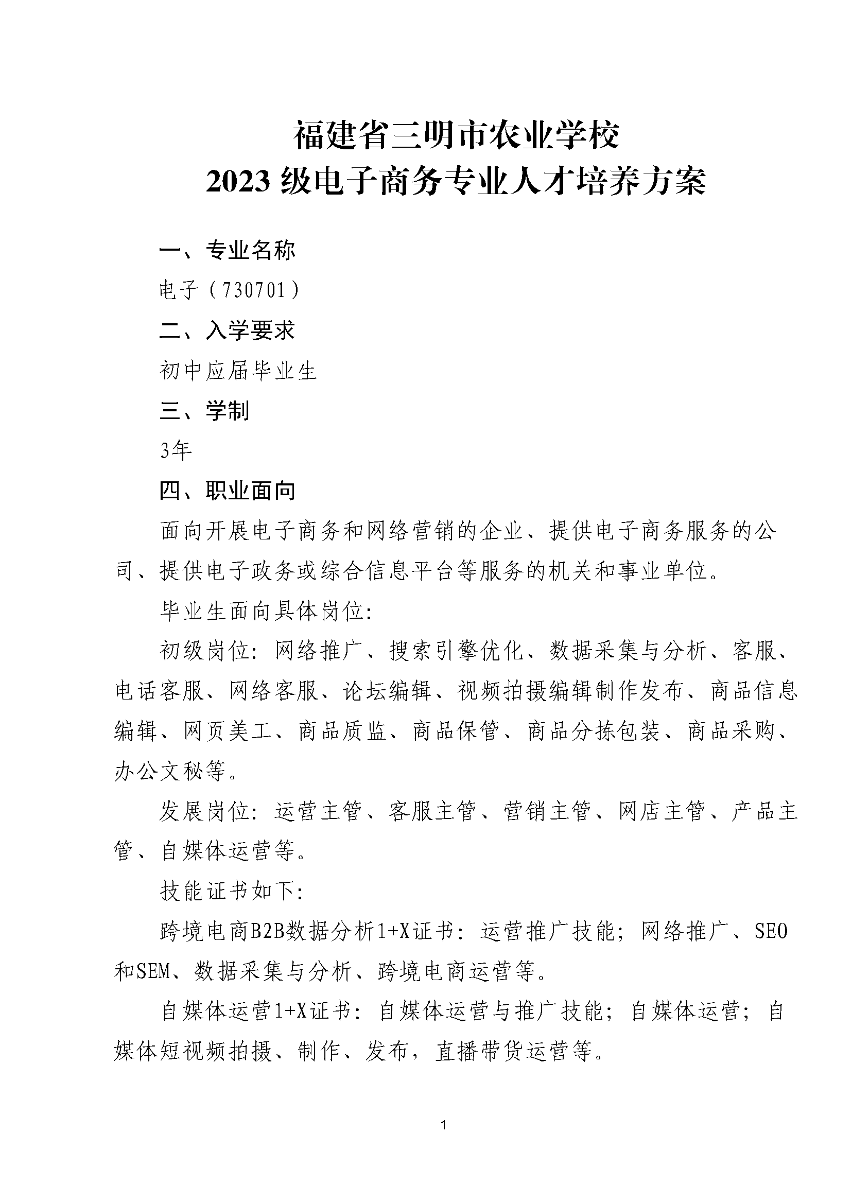 三明市农业学校电子商务专业人才培养方案(2023)