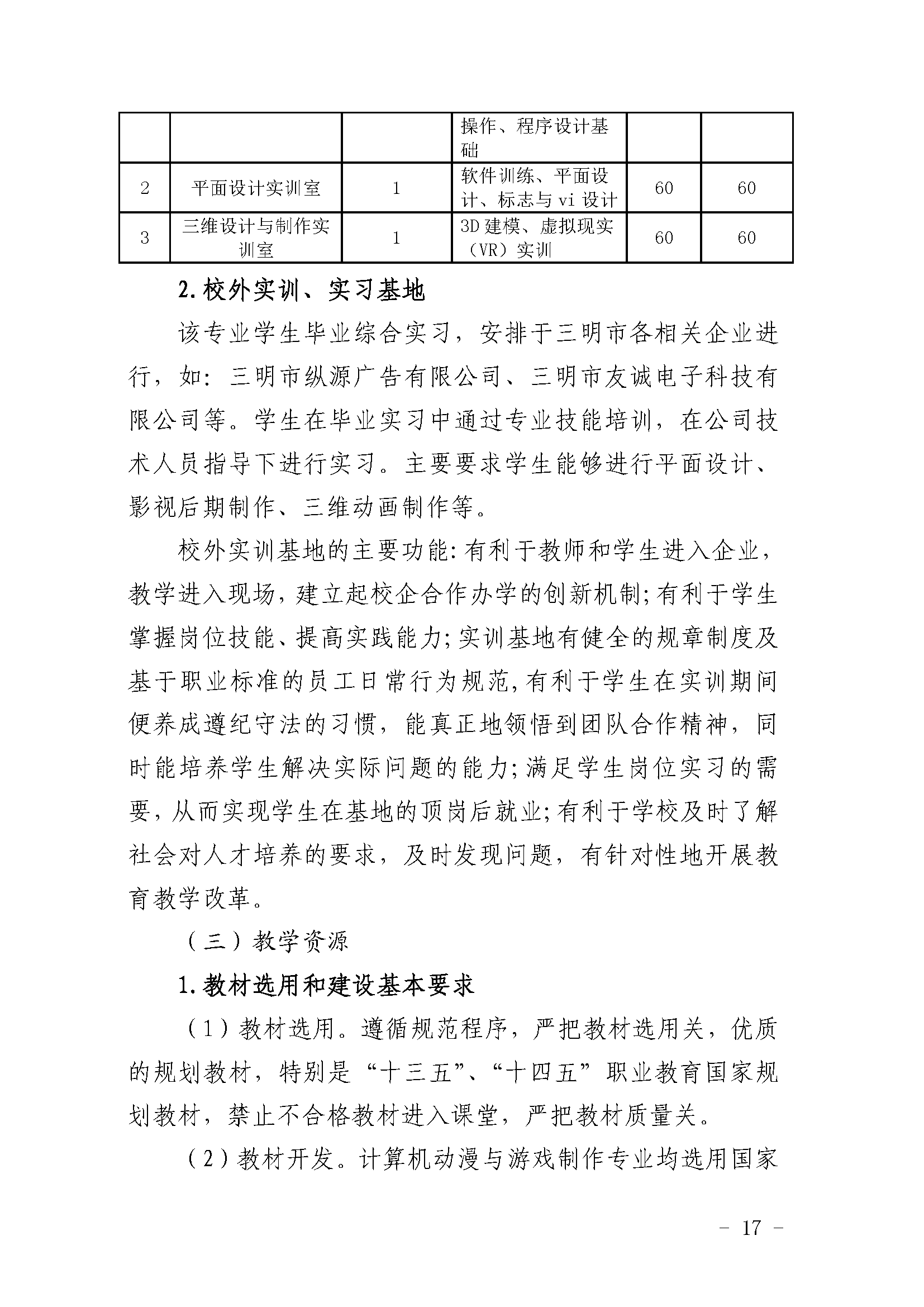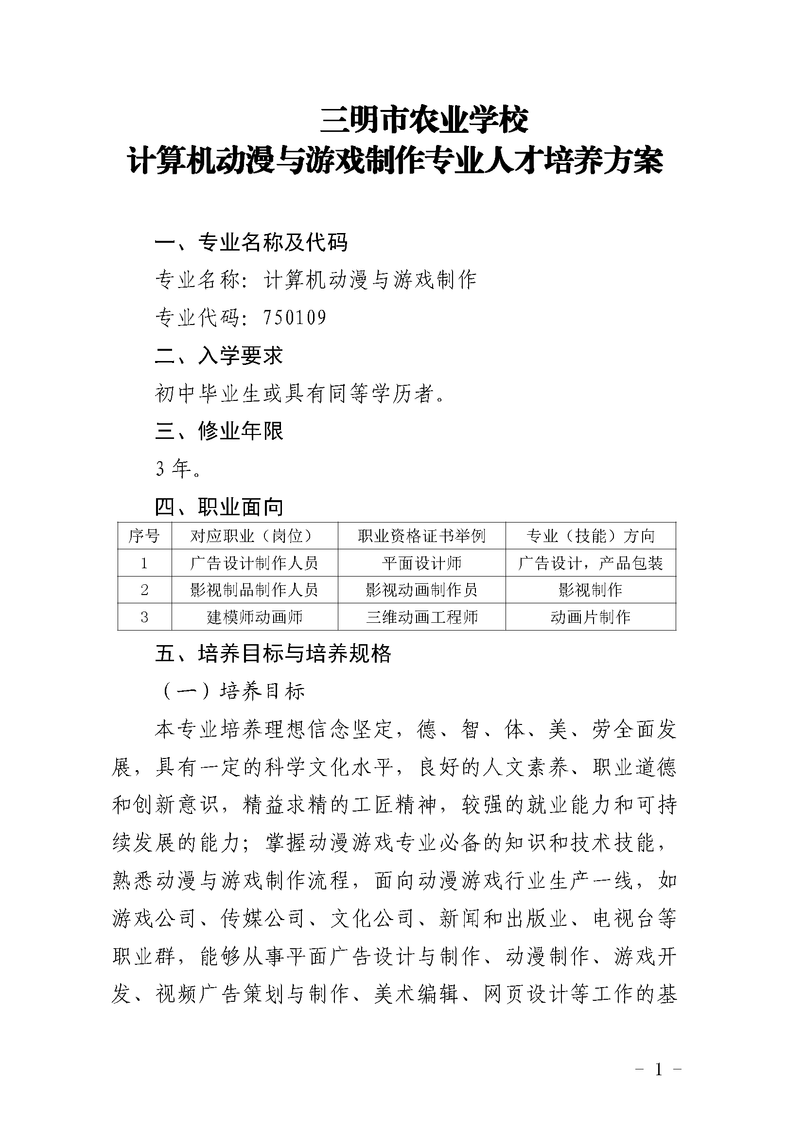 三明市农业学校动漫与游戏制作专业人才培养方案(2023)