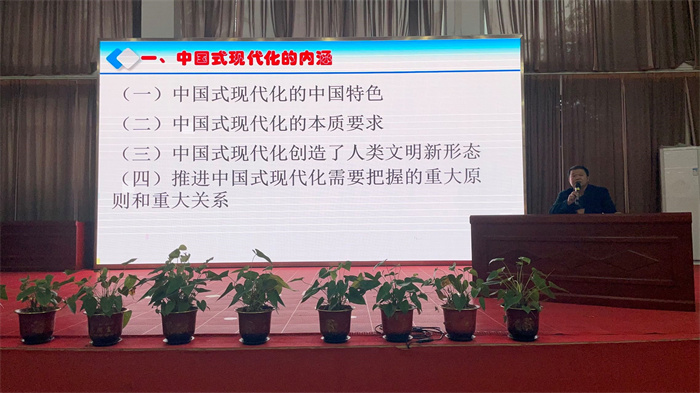 随后,校党委委员、副校长陈文优以《以中国式现代化推进学校办学高质量发展》为题,结合党的二十大报告中关于职业教育的重要论述,从“职业教育发展的时代背景”“中国式现代化的内涵”“提升办学质量的思路”等方面为大家带来了一堂精彩的党课。