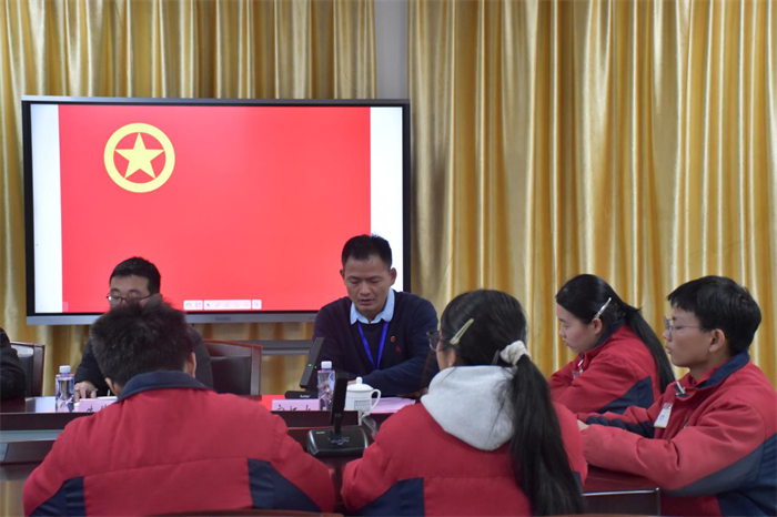 团支部书记冯尤彬汇报团员和青年主题教育开展情况
